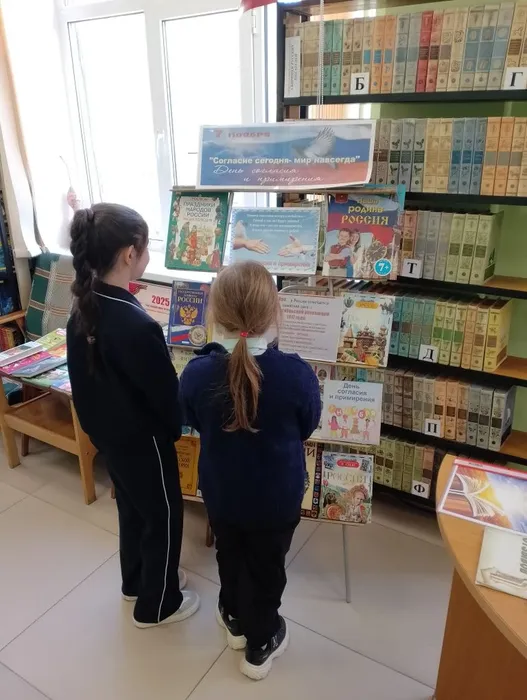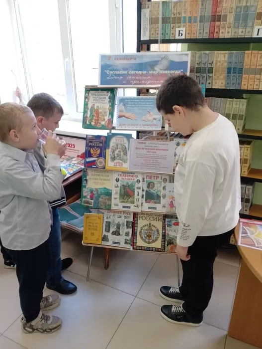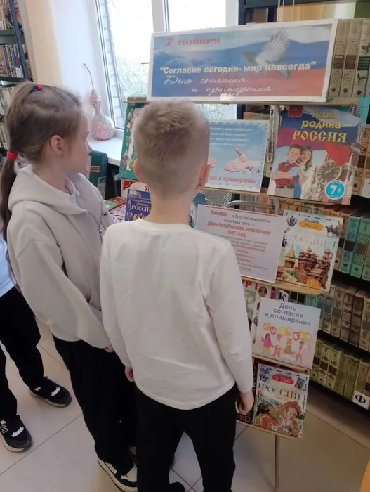 7 ноября в Центральной детской библиотеке библиотекарем проведена беседа у книжной выставки «Согласие сегодня – мир навсегда» с учениками 1–9-х классов МБОУ «ОЦ № 1 Майкопского района». День согласия и примирения празднуется в России ежегодно 7 ноября. В этот день отмечался важнейший праздник для всего народа Советского Союза – годовщина Великой Октябрьской революции. Он праздновался целых два дня, с 7 по 8 ноября. В России с 1992 года выходным днем осталось лишь 7 ноября. Эта дата ознаменовала огромный период в жизни государства. Для многих наших граждан, особенно для людей старшего поколения, празднование годовщины Великого Октября продолжает оставаться важной традицией, которую нельзя перечеркнуть. Процессы единения приобрели всеобщий и необратимый характер. Патриотические чувства к Отечеству, любовь к Родине становятся неотъемлемой частью нашего народа. Появилась необходимость в празднике, который бы сглаживал противоречия между старшим и молодым поколениями. Таким праздником и стал День согласия и примирения.