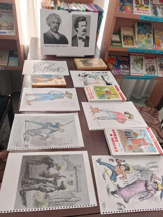 25 ноября в Тимирязевской сельской библиотеке для учащихся среднего школьного возраста проведено литературное путешествие «Марк Твен и его герои», посвященное 110-летию со дня рождения американского писателя по книге «Приключения Тома Сойера». Ребята познакомились с интересными фактами из жизни писателя, настоящее имя которого Сэмюэль Лонгхорн Клеменс, успевшего поработать лоцманом и шахтером. Увлекательную книгу «Приключения Тома Сойера» о похождениях мальчугана-сорванца знают и взрослые, и дети. Присутствующие вспомнили фрагменты из романа, в которых Том увлекает мальчишек в покраску забора за вознаграждение, про кошку на экзамене и ночное путешествие на кладбище, а также имена тетушки, друзей и подруги Тома. Ребята выбрали понравившиеся рисунки по мотивам книги «Приключения Тома Сойера» для раскрашивания и познакомились с другими произведениями автора.
