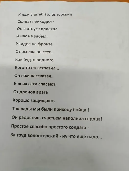 4 декабря ко Дню волонтера в России библиотекарем Тимирязевской сельской библиотеки в теплой и дружеской обстановке был проведен вечер «Мы вместе» для представителей старшего поколения. В нем приняли участие участники группы по плетению сетей «Тихий фронт – ZOV мы вместе» поселка Тимирязева. А также с волонтерской миссией их посетила Салова С. Я., доставив пряжу для плетения носков участникам СВО. Библиотекарем Тимирязевской сельской библиотеки была оформлена книжная выставка «Наша гордость – наш земляк Е. И. Салов» с проведением библиографического обзора о многогранной деятельности автора. За чашкой чая участники мероприятия делились воспоминаниями из своей молодости, пели песни прошлых лет, принимали участие в различных играх и конкурсах. В процессе общения каждый из участников встречи получил массу позитивных эмоций. Участница волонтерской группы Натыкач Н.В. написала стихотворение и раздала листовки, рассказывающие о Дне волонтера.