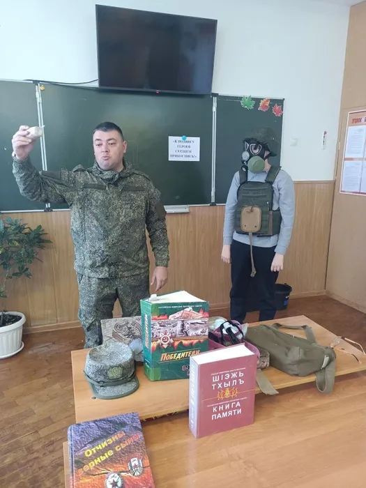 4 декабря библиотекарем Удобненской сельской библиотеки проведен урок мужества «К подвигу героев сердцем прикоснись», посвященный Дню Героев Отечества, для старшеклассников МБОУ «ОЦ № 4 Майкопского района». На мероприятие был приглашен действующий военнослужащий, участник СВО, участник региональной программы «Герои Адыгеи» В. В. Стасев. Началось мероприятие с минуты молчания в память о всех погибших на полях сражений. Владимир Владимирович начал свою беседу с разговора о причинах военных конфликтов. Затем он связал эту тему с Россией. Он рассказал, как стал волонтёром, о поездках с гуманитарным грузом в зону, об опасных эпизодах, произошедших во время пребывания в зоне СВО. Наиболее душераздирающим был рассказ гостя о встрече с детьми, потерявшими родителей. Как сказал Владимир Владимирович, понятно, что войны не бывает без жертв, но, когда он увидел этих детей с глазами стариков, полными прожитой жизни, в душе все перевернулось. Запоминающимся оказался и рассказ гостя о том, как они чуть не попали в плен. Далее в своем рассказе Владимир Владимирович поднял тему фейков, приводя примеры и объясняя, что эти фейки распространяются противником для дестабилизации обстановки в стране. И в заключение он показал приемы оказания первой помощи, познакомив участников мероприятия с содержимым аптечки каждого бойца. Такие встречи способствуют патриотическому воспитанию подрастающего поколения.