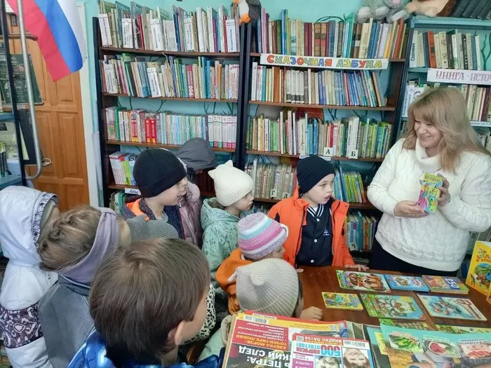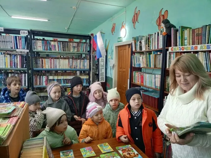 Библиотекарь подробно рассказала детям, каким образом расставляются книги на стеллажах, какая существует последовательность размещения изданий, а также поделилась секретами быстрого нахождения нужной книги. Она провела обзор тематических полок и книжной выставки, которую подготовила для детей.
