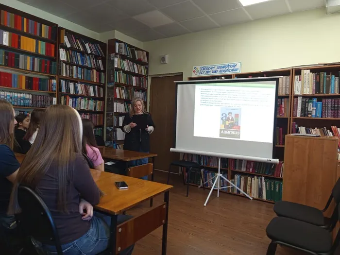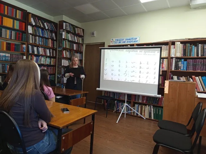 13 марта в Центральной районной библиотеки прошел час-исследование «Адыгейский язык – живое наследие». Мероприятие, посвященное богатому языковому и культурному наследию адыгского народа, подчеркнуло важность сохранения его уникальных традиций. Сотрудники библиотеки познакомили старшеклассников МБОУ «ОЦ № 1 Майкопского района» с основными этапами развития адыгейского языка, когда вышел в свет первый «Букварь черкесского языка» и кто был его создателем. Библиотекарь рассказала о важности сохранения национального языка, с помощью которого любой народ из поколения в поколение передает свою самобытную культуру, традиции и ценностные ориентиры.