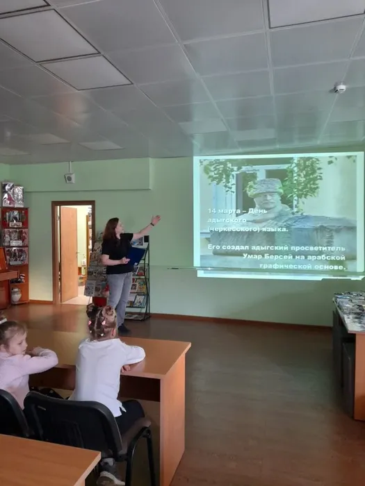 13 марта в Центральной детской библиотеке библиотекарем было проведено чтение-развлечение «В гостях у адыгской сказки» с учениками 2 «Г» класса МБОУ «ОЦ №1 Майкопского района». Библиотекарь рассказала о Республике Адыгея, ее географическом расположении на территории Российской Федерации, культуре и адыгском языке. Она рассказала историю создания адыгейского алфавита, о роли адыгских просветителей: У. Х. Берсея, Шоры Ногмова, Д. А. Ашхамафа в его разработке и становлении. Ребята узнали, что в адыгейском языке 47 согласных звуков и 3 гласных.