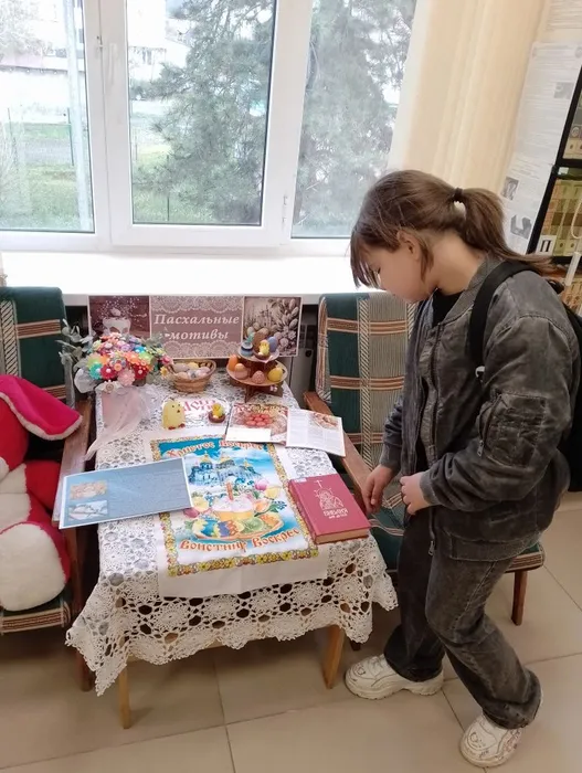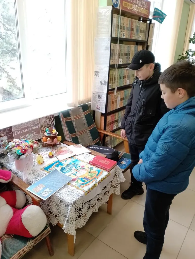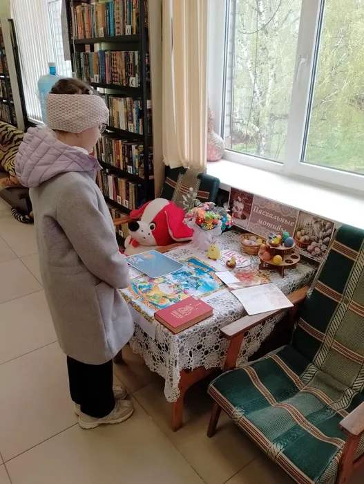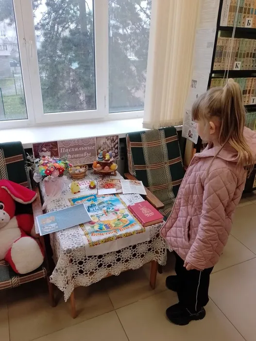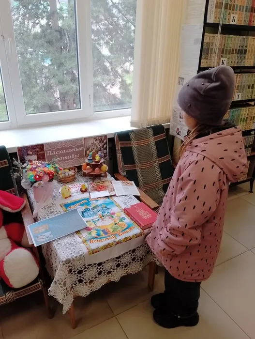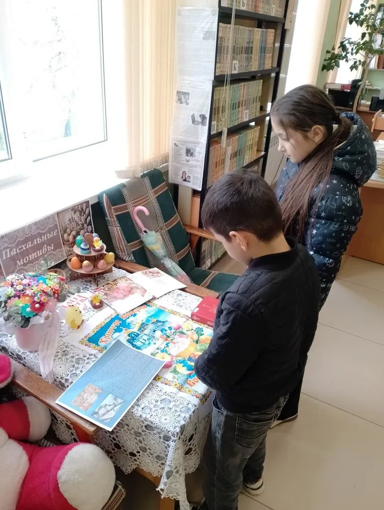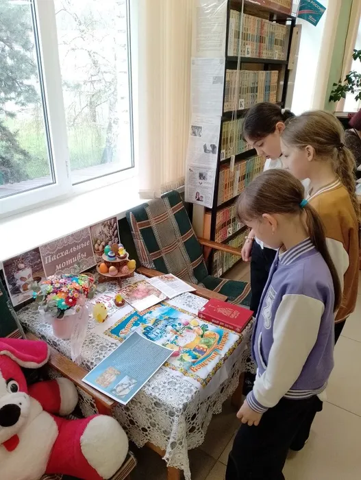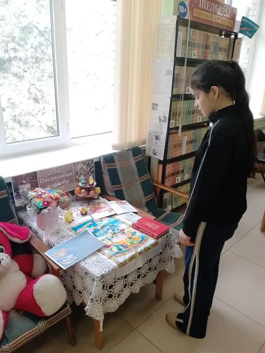 13 апреля в Центральной детской библиотеке была оформлена инсталляция «Пасхальные мотивы». Наряду с книгами об истории и символах празднования Пасхи, о народных традициях и обычаях в инсталляции были представлены пасхальные атрибуты – крашеные яйца, веточки вербы, кулич и, конечно, цветы. Содержательные и интересно оформленные издания помогли узнать о том, как праздновали Пасху в прошлом, как подготовиться к празднику, какие блюда приготовить и как украсить пасхальные яйца.