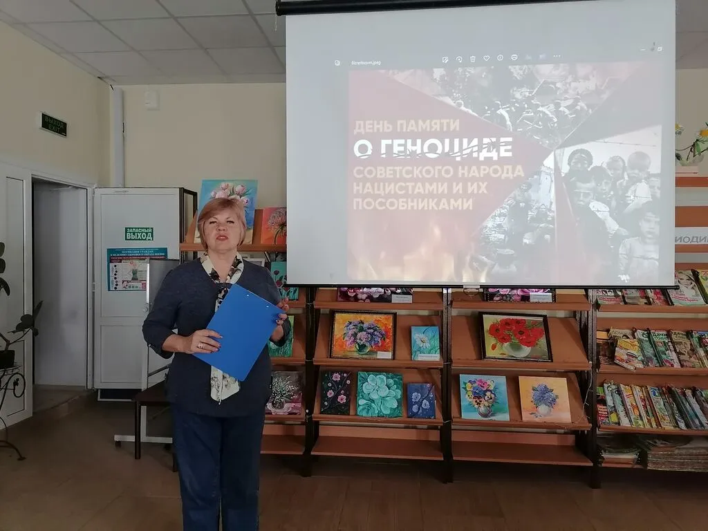 18 апреля библиотекарь Победенской сельской библиотеки в Доме культуры поселка Победа провела беседу «Никто не забыт, ничто не забыто», посвящённую Дню памяти жертв геноцида. Участники встречи узнали о том, что 19 апреля – особенный и памятный день. Эта дата связана с подписанием в 1943 году Указа Президиума Верховного Совета СССР «О мерах наказания для немецко-фашистских злодеев, виновных в убийствах и истязаниях советского гражданского населения и пленных красноармейцев». Документ стал правовой основой для уголовного преследования нацистов и их пособников, а также создал прецедент в международном праве, закрепив неотвратимость наказания за преступления против человечности. Были приведены конкретные исторические факты геноцида: лагеря смерти («Красный» вблизи Симферополя, Яновский концлагерь), детские концлагеря (в Вырице, где дети работали до 12 часов в день, подвергались выкачке крови для немецких солдат), блокада Ленинграда, унёсшая жизни более миллиона человек, карательные операции, принудительный труд, угон в рабство, создание условий, приводящих к гибели (голод, холод, антисанитария). На Нюрнбергском трибунале (1945–1946 гг.) были осуждены высшие чины нацистской Германии; также в 2023 году состоялось современное юридическое признание геноцида советского народа Верховным судом РФ. Память о жертвах – это не только дань уважения погибшим, но и предупреждение будущим поколениям о недопустимости повторения трагедии.