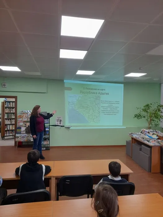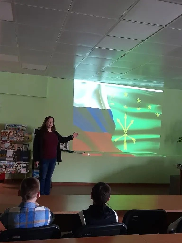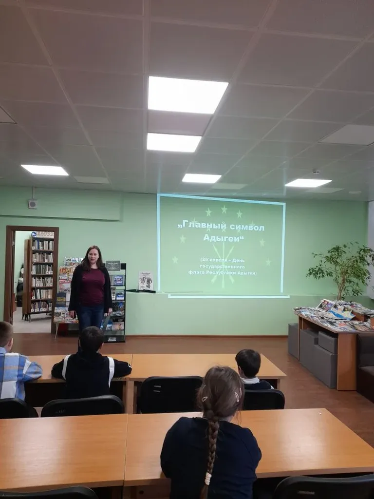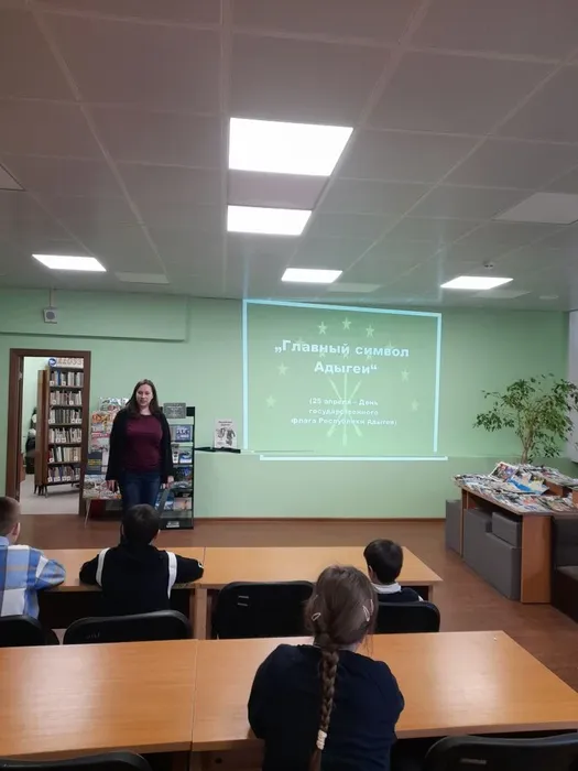 23 апреля в Центральной детской библиотеке библиотекарем был проведен видеоурок «Главный символ Адыгеи», посвященный Дню Государственного флага Республики Адыгея, для учеников 3 «Ж» класса МБОУ «ОЦ №1 Майкопского района». На мероприятии в рамках работы клуба «Хачещ» школьники узнали историю создания флага Республики Адыгея. Они разобрались в символике флага: что означают изображения звезд и стрел, цвет полотнища и значение золотого шитья. Ребята узнали о правилах использования флага: где и как он должен быть расположен, на каких учреждениях обязательно должен быть установлен и в какие дни флаг Республики Адыгея может быть вывешен даже в жилых домах. В конце мероприятия дети посмотрели видеоролик «История создания флага Республики Адыгея», в котором об этом рассказывал работник Национального музея Республики Адыгея.